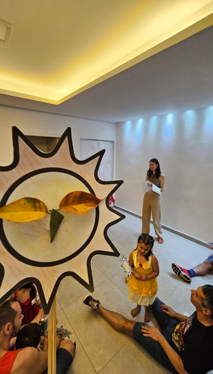 No dia 30/11/2024, a Casa da Flor Dourada promoveu uma oficina criativa em confraternização com crianças e seus cuidadores. O tema foi o resgate da autenticidade, da alegria e do lúdico no dia a dia. Foi realizada a contação do mito japonês de Amaterasu como sensibilização e atividade expressiva inspirada na história, na qual as crianças puderam colorir seu próprio sol, simbolizando suas características únicas que iluminam a vida de seus cuidadores. Os adultos também foram instigados a refletir sobre quais estratégias podemos utilizar para nos conectar com nossas crianças no dia a dia.